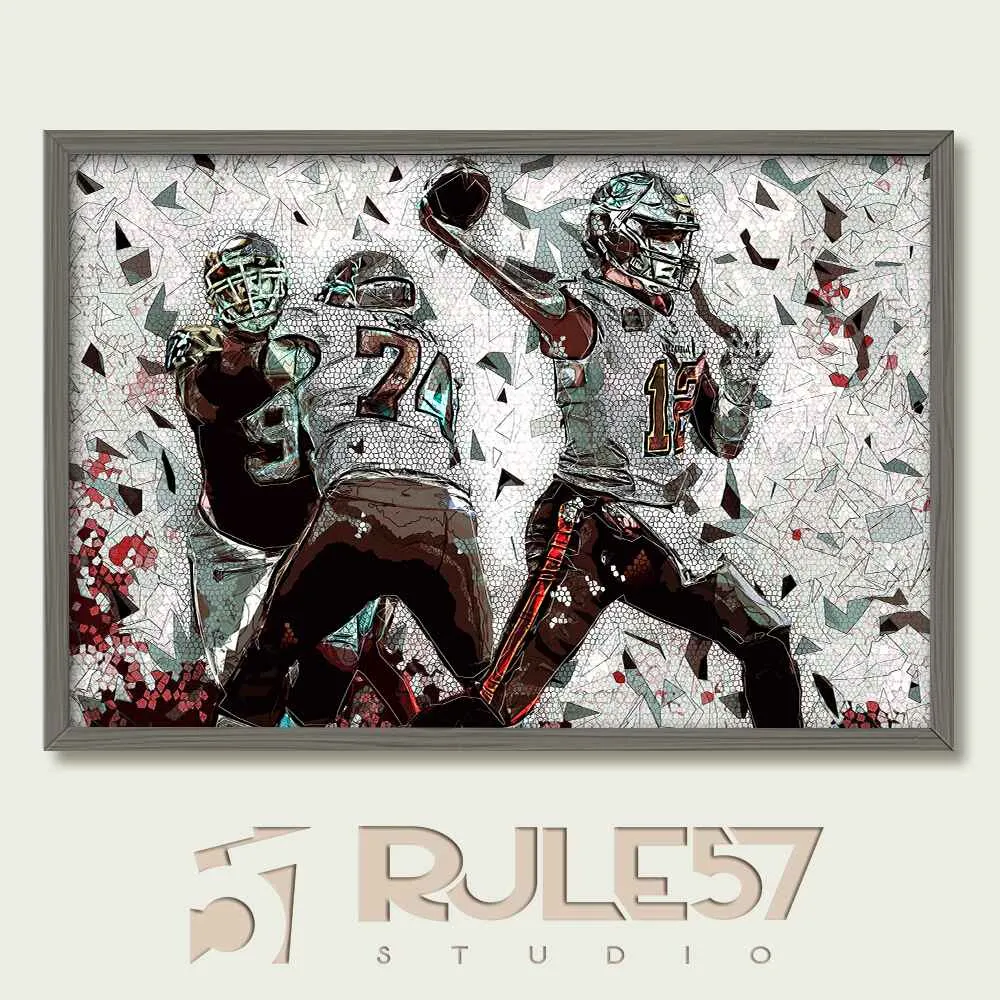 Tom Brady’s precision and skill are on full display in this print, showing him in passing mode. A must-have from the Vivid Sports Portraits Collection, it honors the legacy of one of football’s greatest.