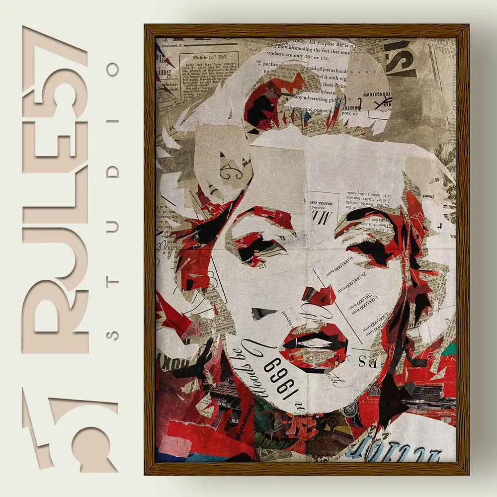 Experience the timeless elegance of Marilyn Monroe through our mixed media portrait print, highlighting her iconic gaze and magnetic charisma in a vivid modern pop art style.