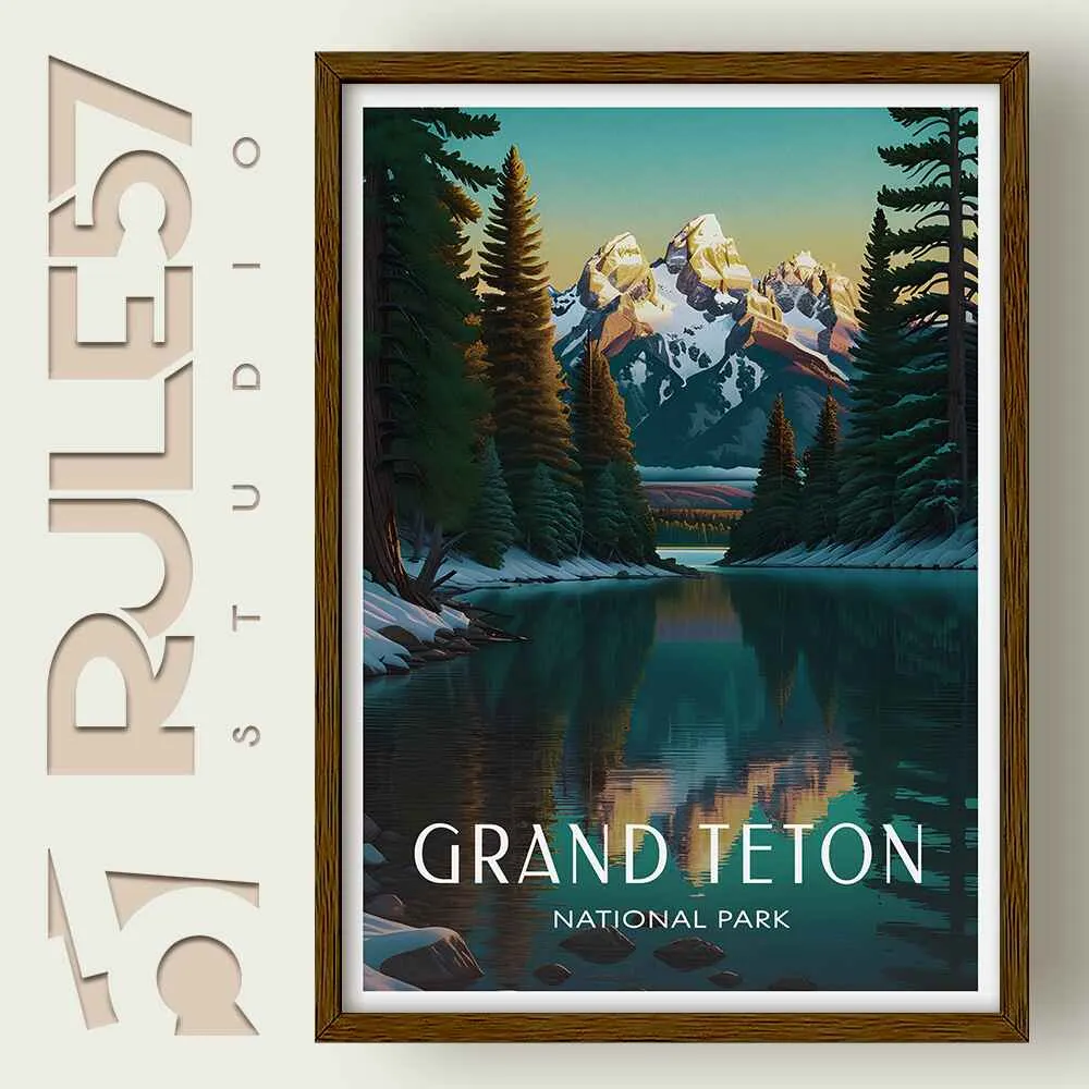 Discover the rugged beauty of the Teton Range with our Grand Teton National Park Print, showcasing the park’s towering peaks and serene landscapes in stunning detail.