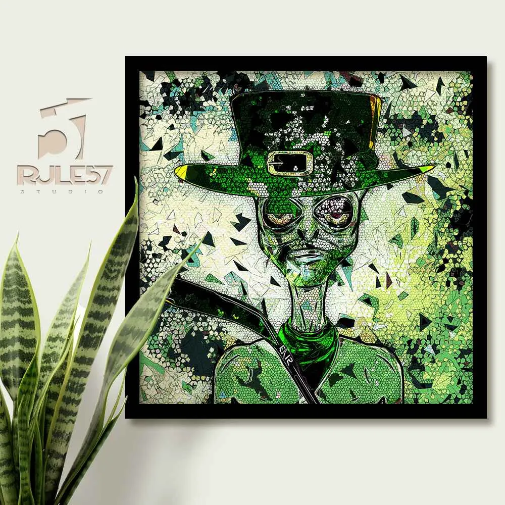 Embrace the mix of sport and celebration with our NFT-Inspired Character Art print of a hockey player caught between the game and St-Paddy's Day fun. His leprechaun hat shows his readiness to party despite his disappointment. With bold colors and a playful pop art style, this artwork adds a festive vibe to any decor.